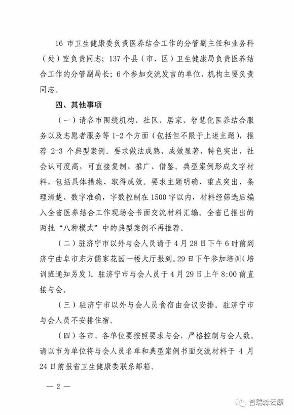 2019年全省醫養結合示范創建推進會暨醫養結合工作現場會2019年4月29日上午8時左右,山東普瑞森醫療設備股份有限公司各部門負責人在王總的帶領下參加在曲阜市舉行的“2019年全省醫養結合示范創建推進會暨醫養結合工作現場會”,并陪同省衛健委領導參觀小雪社區衛生服務中心醫養結合示范點。