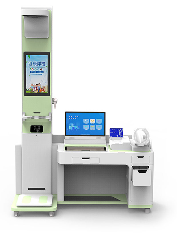 涵蓋基本公衛體檢項目,心電檢測設備隱藏式設計, 整體弧面造型,人體工程學設計,增強用戶體驗感。