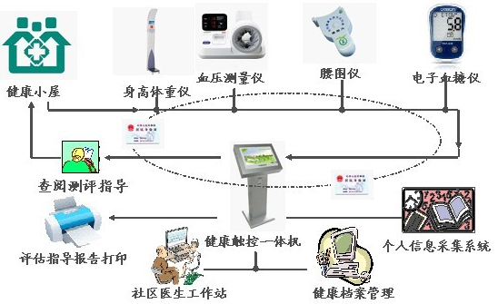 “健康小屋”是指通過(guò)物聯(lián)網(wǎng)技術(shù)把一批健康檢查設(shè)備整合在一個(gè)溫馨、舒適的環(huán)境下,使受檢者可以自主的選擇檢查項(xiàng)目,實(shí)現(xiàn)一系列生理參數(shù)的檢測(cè),系統(tǒng)自動(dòng)對(duì)受